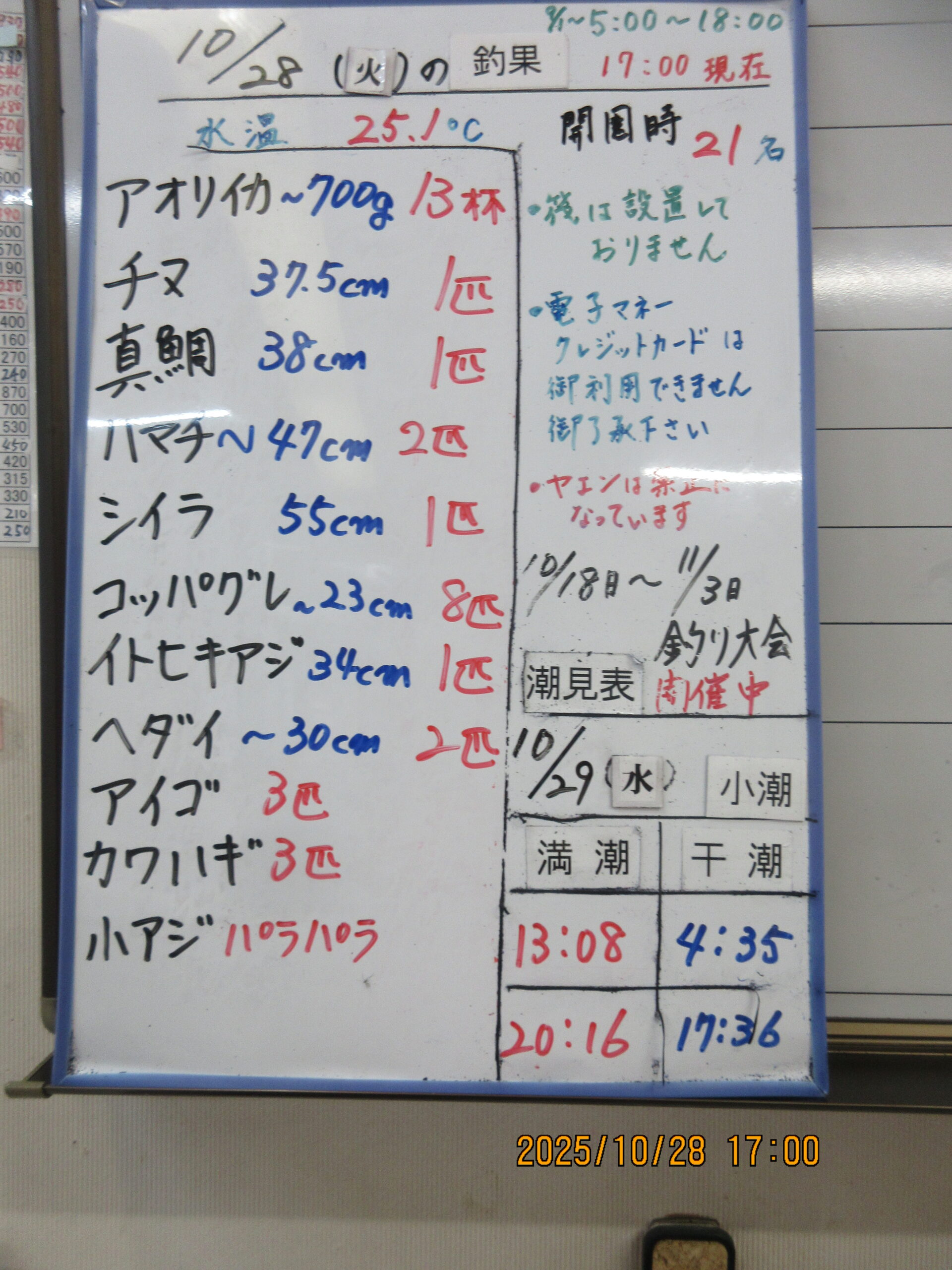 2025.10.28(火) 25,1℃ 開門時21名