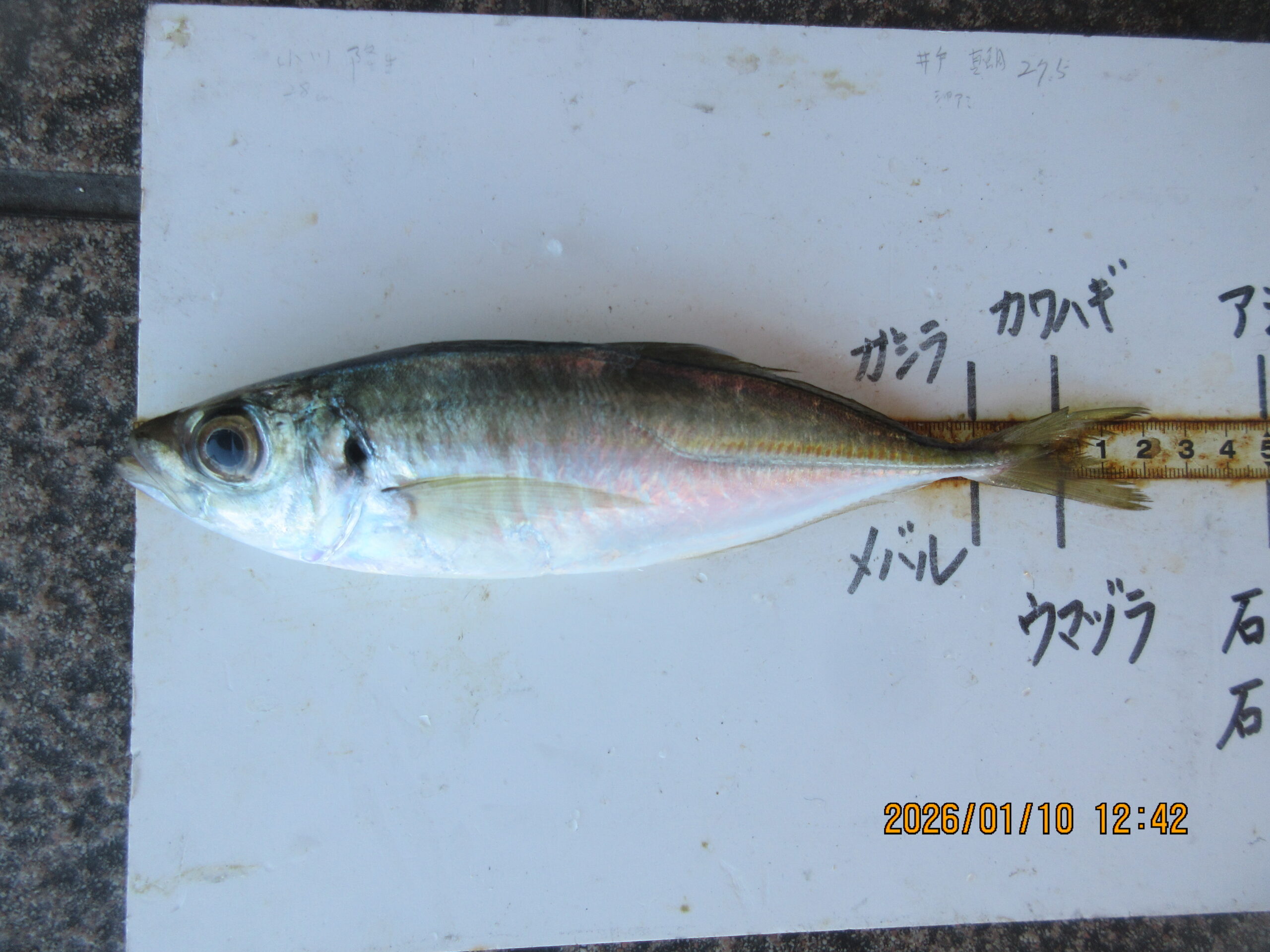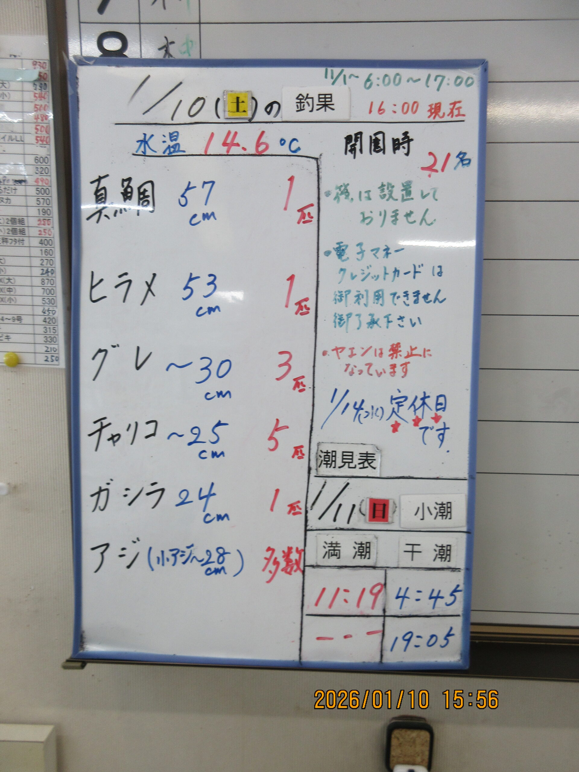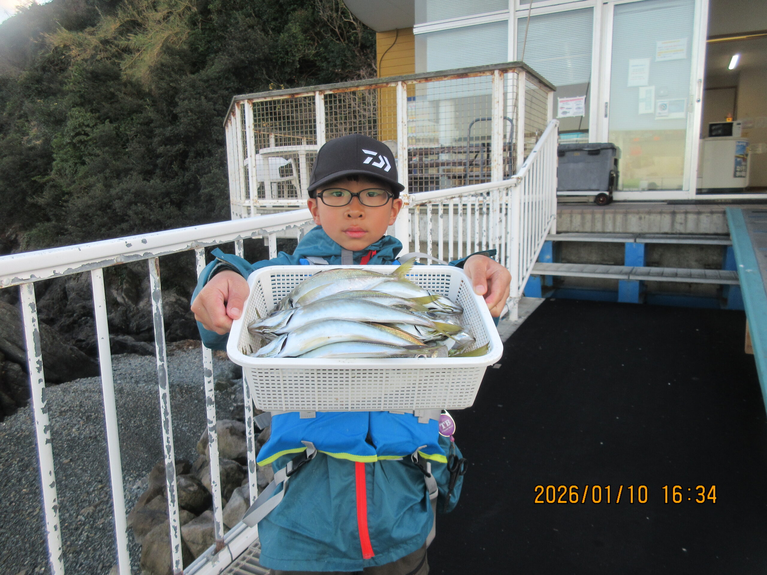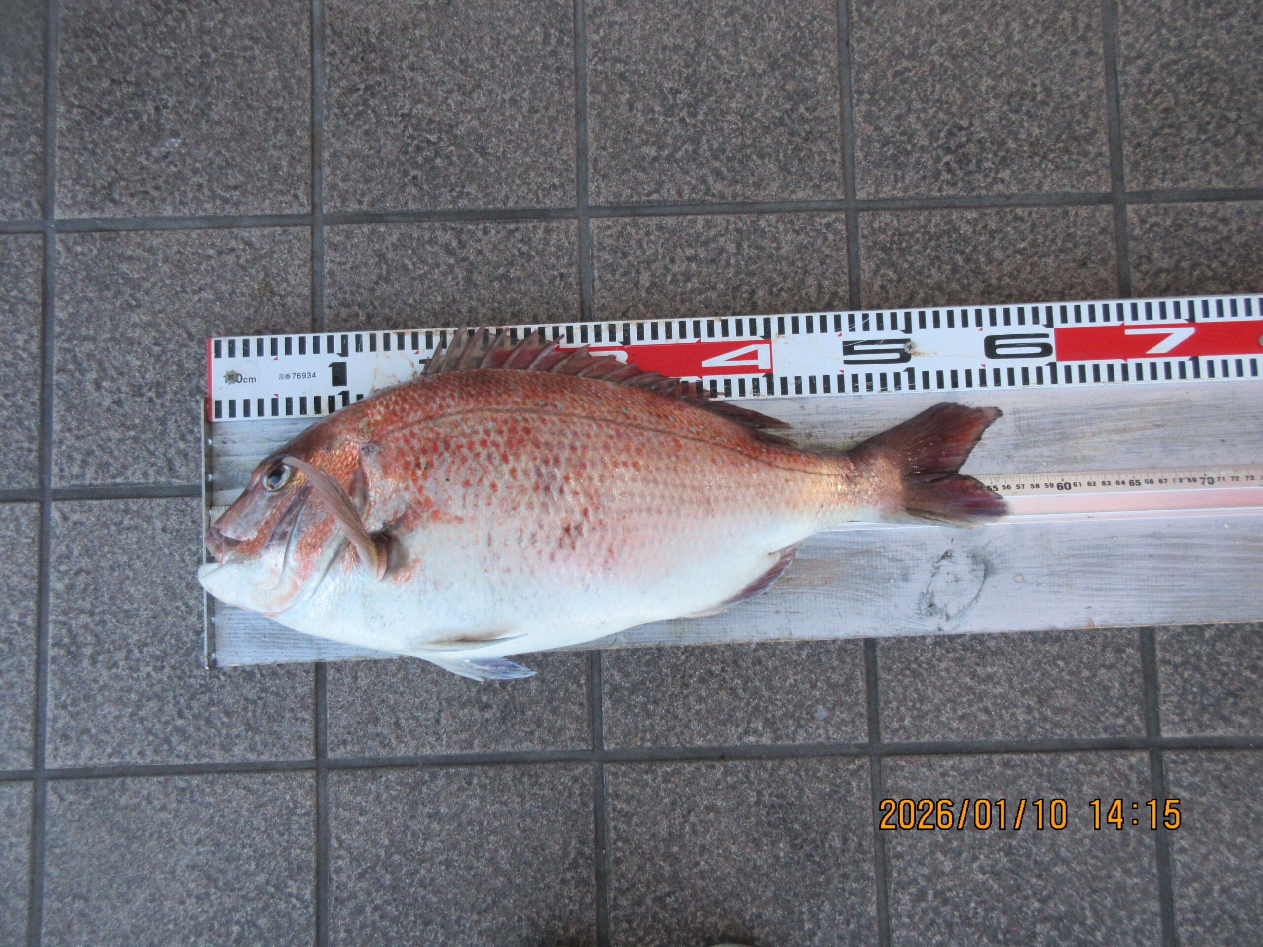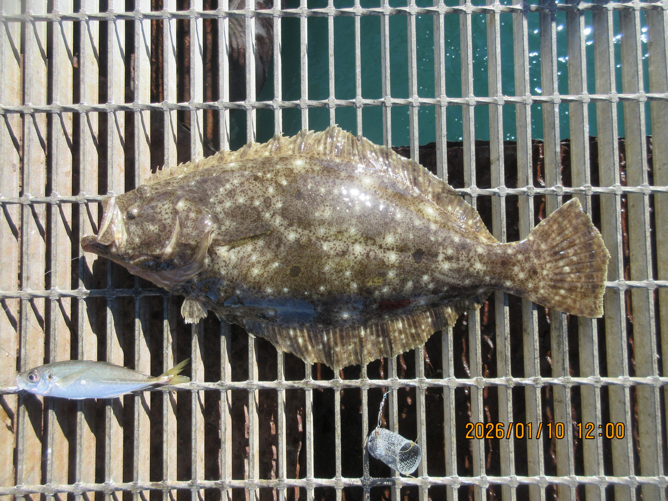 絞り込み結果 2026.01.10 魚種:アジ 2026.01.10 天候:晴れ 水温:14.6℃潮:中潮 2026.01.10(土)田中君 魚種:アジ サイズ:~26.5cm 匹数:多数エサ:飛ばしサビキ 2026.01.10 魚種:真鯛 2026.01.10 天候:晴れ 水温:14.6℃潮:中潮 2026.01.10(土)黒島様 魚種:真鯛 サイズ:57cm 匹数:1エサ:オキアミ 2026.01.10 魚種: 2026.01.10 天候:晴れ 水温:14.6℃潮:中潮 2026.01.10(土)本日の釣果 魚種: サイズ: 匹数:エサ: 良いお天気になりましたが、風が強いです。本日も数は少なくなりましたが、真鯛が釣れています。それに久々に、小アジから28cmまでのアジが沢山釣れて皆様ワクワク。皆様笑顔でいい日ですね。続いて欲しいものです。本日も有難うございます。 2026.01.10 魚種:アジ 2026.01.10 天候:晴れ 水温:14.6℃潮:中潮 2026.01.10(土)田中君 魚種:アジ サイズ:22.5cm 匹数:1エサ:飛ばしサビキ 2026.01.10 魚種:ヒラメ 2026.01.10 天候:晴れ 水温:14.6℃潮:中潮 2026.01.10(土)森田様奥様 魚種:ヒラメ サイズ:53cm 匹数:1エサ:チャリコ呑ませ