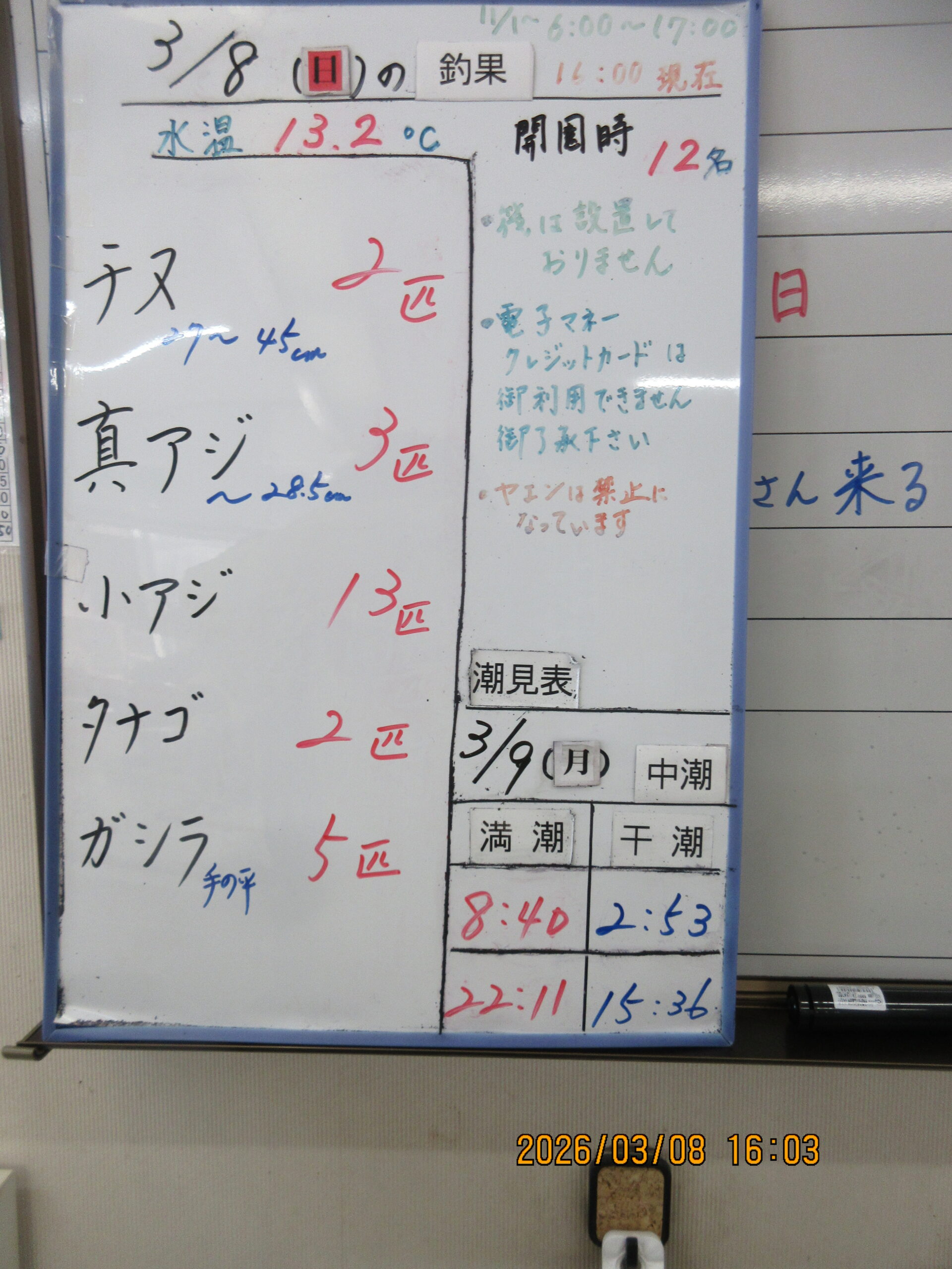 2026.03.08(日) 水温13.2℃ 開門時 12名