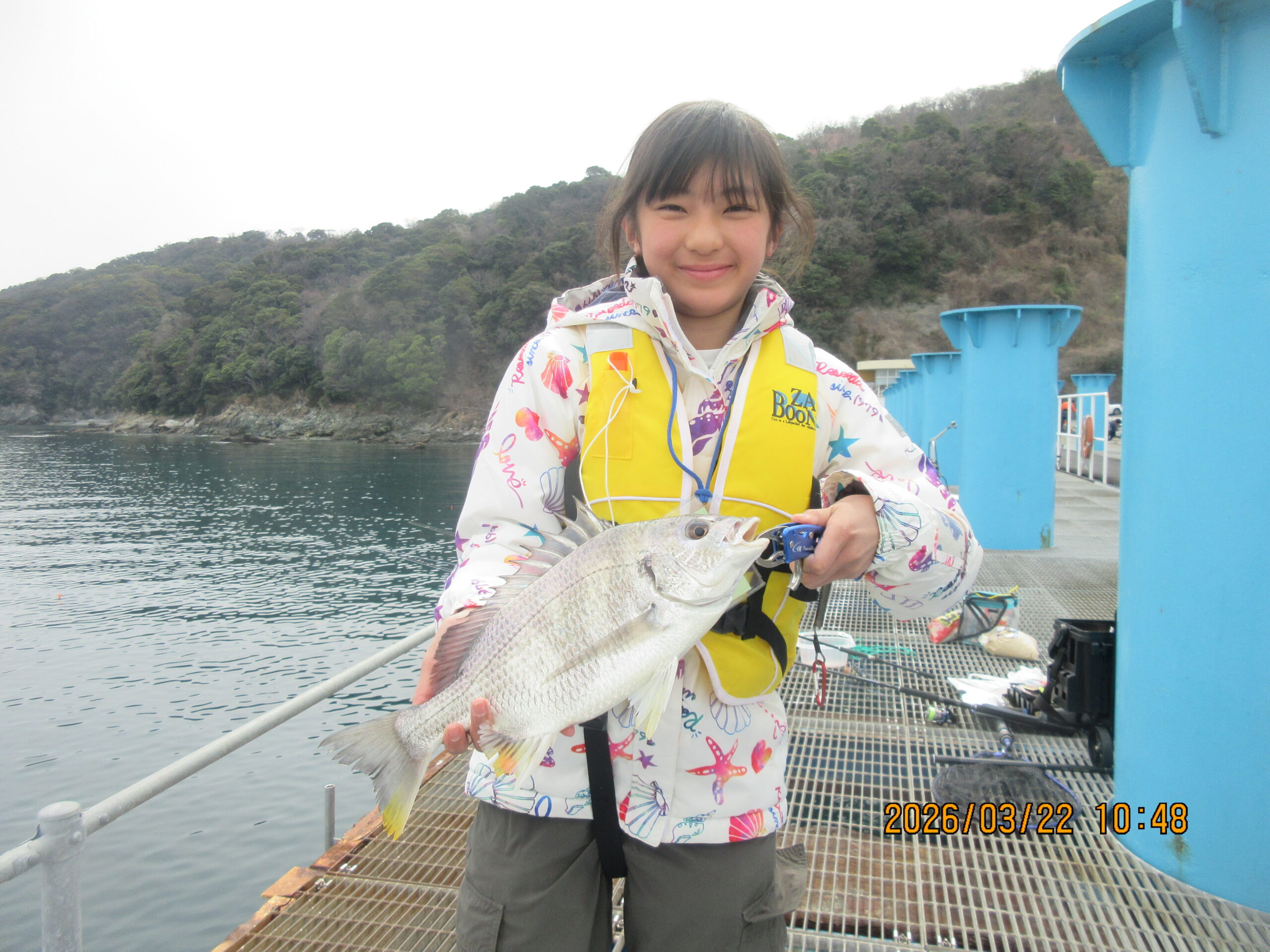 絞り込み結果 2026.03.22 魚種:キビレ 2026.03.22 天候:晴れのちくもり 気温:15.9℃ 2026.03.22(日)ほのかちゃん 魚種:キビレ サイズ:40cmcm 匹数:1匹エサ:オキアミ 2026.03.22 魚種: 2026.03.22 天候:晴れのちくもり 気温:15.9℃ 2026.03.22(日) 魚種: サイズ:cm 匹数:エサ: 2026.03.22(日) 水温15.9℃ 開門時 25名 開園時間 6:00~17:00 お弁当は毎週水曜日、木曜日休ませて頂きます。 筏は当面、設置する予定はありません。ヤエン釣りは禁止になっております。 発熱,咳などの風邪症状などの体調がすぐれない方は、当施設のご利用お控えください 電子マネー、クレジットカードは御利用できません。ご了承下さい